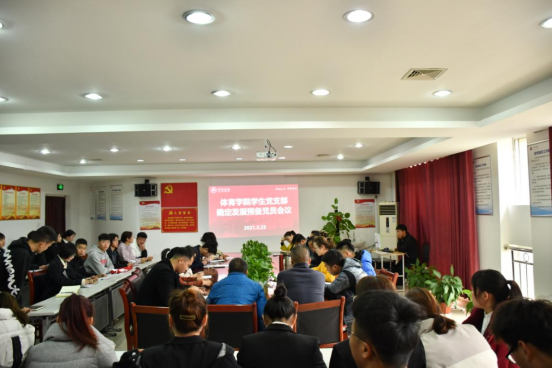 2021年3月23日星期二14点30分,beats365唯一官方网站员工党支部在体育馆二楼会议室召开确定发展预备党员会议。公司党总支支委成员出席了本次会议,此外,各入党申请人的介绍人、班主任以及班级2名入党积极分子代表出席了本次会议。