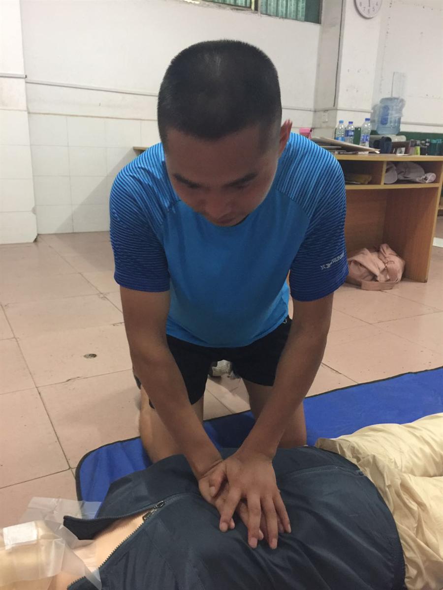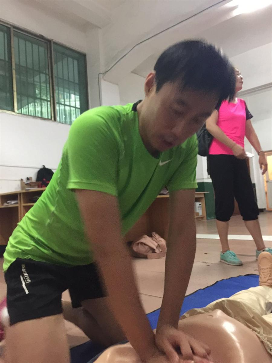 在心肺复舒这个比赛项目上,多数老师都是利用“十一”长假依靠视频、相关资料进行自学,在考试过程中,尽管有些老师的动作不标准,但在最多两次机会尝试下都通过考核。