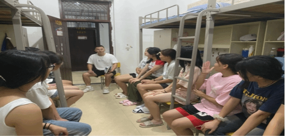 新学期,新作风,新姿态,迎新生。为了解2023级体育教育1班新生入校生活情况并彼此了解熟悉。2023年9月9日晚上,公司23级新生兼职辅导员何雨深入新生宿舍,组织座谈交流,为同学们送去温暖的问候。