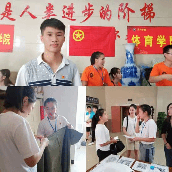 早上六点钟,员工党员们早早的来到迎新地点进行布置,分工明确,两人在门口台阶下举着院牌接应,两人在接待处耐心地接受家长和新同学的咨询,两人在后台做筹备工作。大家以洋溢的笑容迎接新生,为师弟师妹们办理手续,耐心带领师弟师妹们领取军被及军训服并帮忙搬运,辛勤的带新同学办理完手续后带领他们去往宿舍区,沿途介绍学院的布局与体育场地的使用,让他们短时间内对校园有个整体的了解,同时为新生以及家长传金送宝、解决他们心中的困惑。到达宿舍后帮助新生打理一天结束平均每人要来来回回跑5-8趟。截止8号中午十点,终于迎来了最后一位新同学的到来,我们兴奋地拍起了双手,给这位最远的新生热烈的掌声。