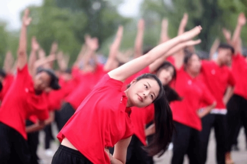 伴随着第九套广播体操的音乐响起,同学们身着统一服装,迈着自信矫健的步伐、整齐划一地走进会场,在轻松舒缓的音律中伸展,扩胸、转体、跳跃……从预备节到整理运动,每一式都刚劲有力,张弛有度,娴熟到位,将广播体操轻盈愉悦、刚柔并济的特点展现得淋漓尽致。同学们以热情饱满的精神状态投入其中,营造出会场活动热烈而充满活力的氛围。