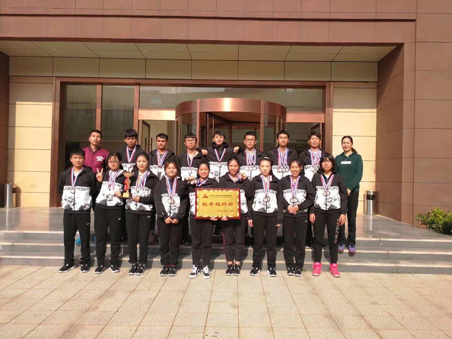 本次大赛由江西省民族宗教事务局和江西省体育局主办,南昌工学院承办。本届少数民族传统体育运动会是江西省历届中规模最大、参赛人数最多的一届少数民族体育盛会,共有11个地级市参与,共计400余名运动员参赛。公司共组织了34名运动员参赛,在团长汤礼萍,副团长袁新忠,教练员刘向东和杨细文老师的带领下,全体运动员、教练员顽强拼搏,奋勇争先,在蹴球项目上,女子双蹴、女子单蹴获得二等奖,男子双蹴和男子单蹴获得三等奖,共计获得3银3铜。在板鞋竞速项目上,多个项目获得三等奖,共计获得33铜。在民族健身操舞项目上,规定套路和自编套路均获得三等奖,共计36铜,同时我市代表团获得“优秀组织奖”的殊荣。