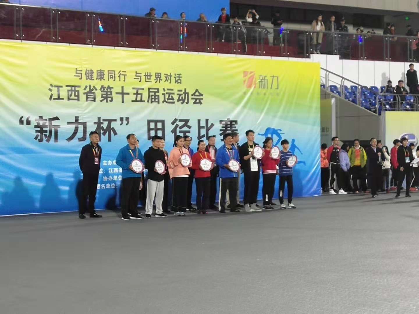 江西省第十五届运动会学校部田径比赛于10月28号—11月4号在景德镇市体育中心举行,BEAT365英国官网网站田径队在教练肖军、刘岚老师的带领下,获得了一金、一银、两铜等优异成绩,同时公司田径代表队获得了“精神文明运动队”称号,为公司争得了荣誉,这是公司体育健儿在比赛中发扬顽强拼搏,团结进取精神,共同努力的结果。希望继续努力,争取更优异的成绩!