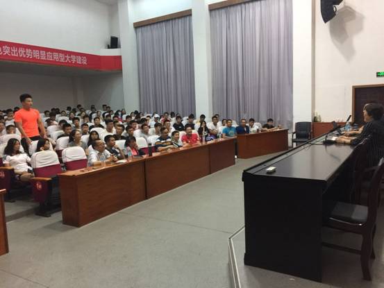 为进一步加强老员工创新创业教育,6月7日晚上,beats365唯一官方网站特邀公司2001级毕业生、温州京都健身集团董事长陈长水员工,为公司师生作“体育专业与健康产业化发展”的创新创业主题宣讲会。beats365唯一官方网站经理易淑梅主持,公司党总支书记周为谋、学校人才招聘处副处长陈岷、萍乡市劳动就业服务管理局副局长林冠兰、创新创业课的老师以及300多名员工参加了宣讲会。