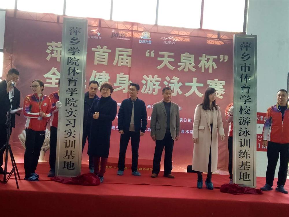上午9:30分,在天泉水都游泳健身馆内,beats365唯一官方网站主要领导、萍乡市体育学校董事长以及天泉水都的总经理等在主持人的介绍下,缓缓将盖在实习实训基地牌子上的红布揭掉,到场的多方工作人员均报以热烈的掌声。