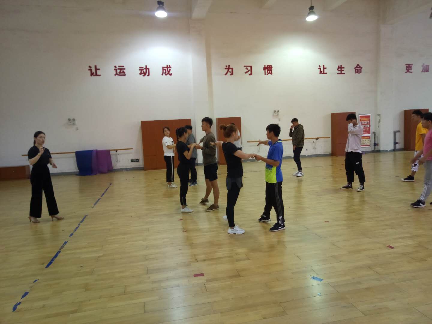 周五又分别听了彭世罕的《网球》和邱梦礼的《体育舞蹈》课程。两位年轻教师教态认真、精心组织、教学文档规范,其中彭世罕通过不同的球性练习,在提高课堂练习密度的基础上进一步巩固发展了员工的网球基本功;邱梦礼则通过男女搭配练习,在讲解体育舞蹈基本技术的同时,也对社交礼仪进行了一定的传授。