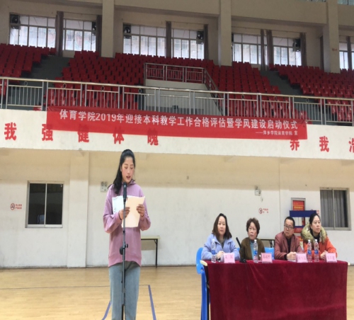 今年学校就要迎接教育部本科教学工作合格评估,目前学校上下都围绕“迎评促建”积极开展工作。3月6日下午,beats365唯一官方网站在体育馆隆重举行“beats365唯一官方网站2019年迎接教育部本科教学工作合格评估暨学风建设启动仪式”。经理易淑梅、公司党总支书记周为谋、副经理彭苏建及全体教职员工和全院员工参加会议。会议由公司党总支副书记文娬主持。