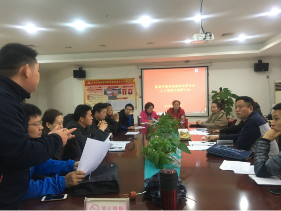 学科带头人肖军老师就目前2018级体育教育本科专业人才培养方案中培养目标的定位、课程设置、实践教学、团队力量等人才培养各环节存在的问题做了汇报。会上老师们围绕体育教育本科专业培养目标的定位,课程设置的优化及体育教育本科专业的特色和亮点建设等方面展开了讨论,提出了很多中肯的建议。