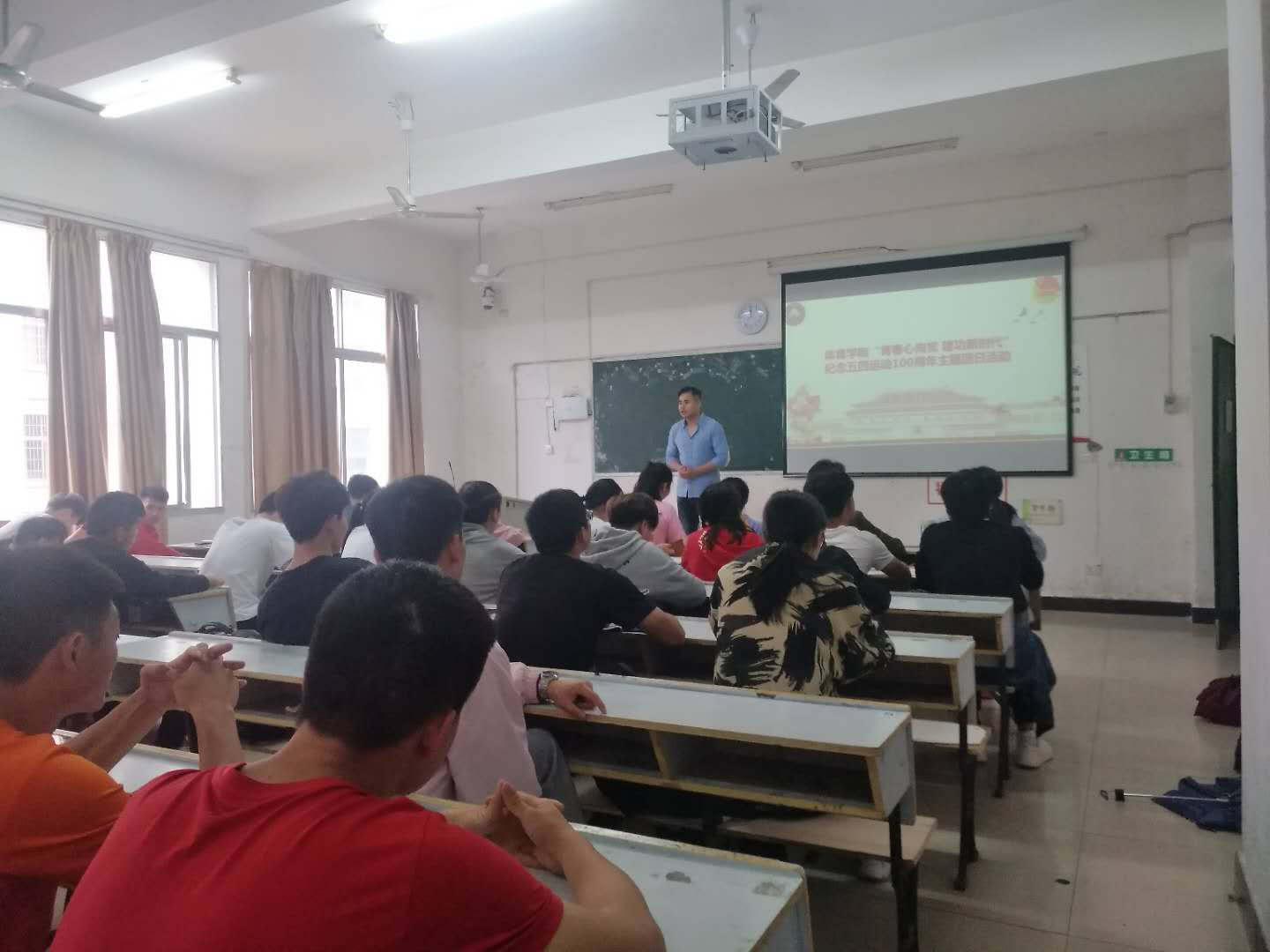 活动中,学工科科长刘晔首先介绍了五四运动的历史背景、事件经过及历史意义,加深了同学们对五四运动的了解,对同学们学习五四精神形成了良好的推动力;其次通过观看PPT、视频等多种丰富的形式让同学们深入了解五四运动中以爱国主义为中心的伟大民族精神,增强了同学们的光荣感,责任感和使命感;再次,活动中同学们还深入学习了习近平总书记在纪念五四运动100周年大会上的重要讲话,更加坚定了听党话、跟党走的决心和信心。