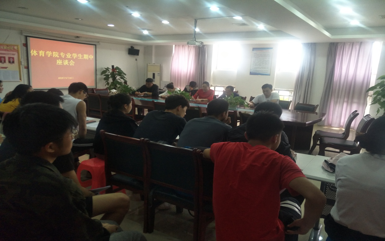 为加强学院教学管理和监督,优化课堂教学,全面提升学院教学质量,及时了解教学工作中存在的问题和员工对教学的满意度,5月14日中午在学院会议室召开了体育专业课程期中座谈会。学院负责教学工作副经理彭苏建、社体专业带头人范春金、体教专业带头人肖军、教研室主任刘兵、刘萍老师出席了座谈会,学院2018级至2016级共30余名员工代表参加,会议由副经理彭苏建主持。