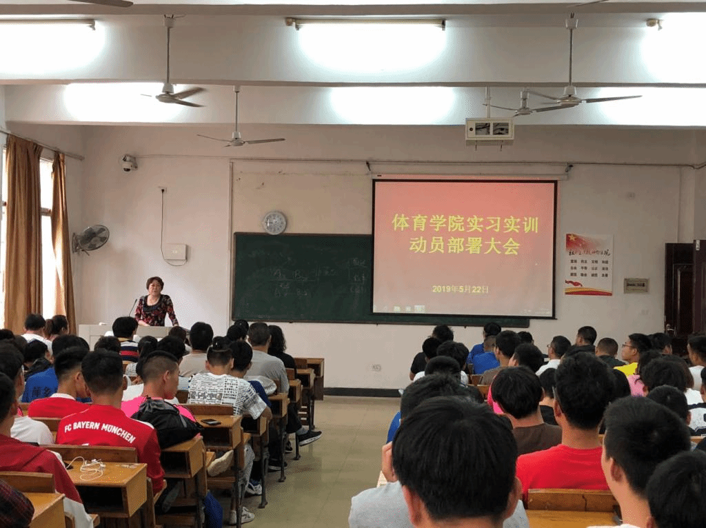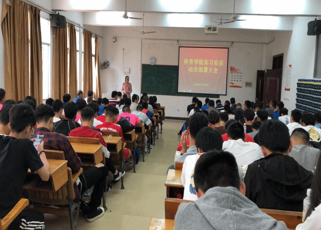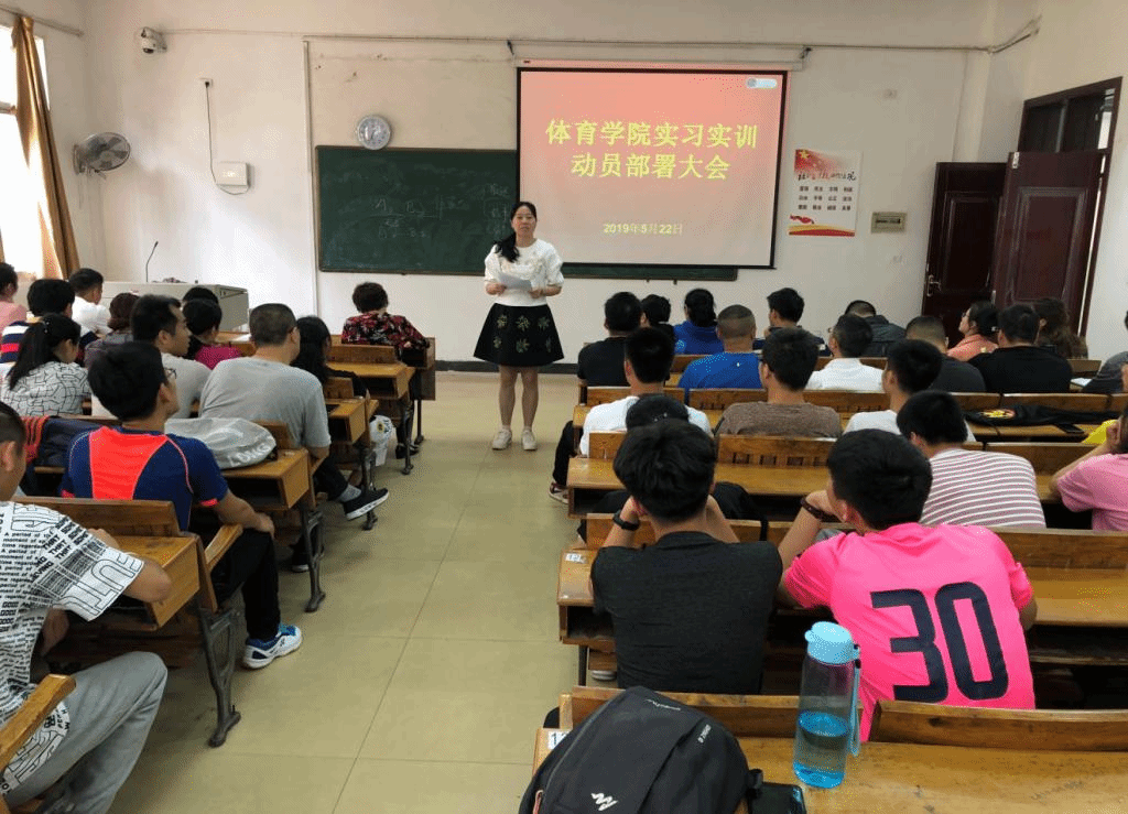 校内实训是体育教育专业教学计划的重要部分,是培养新时代合格中小学体育教师、教练员的重要环节之一。为保障下学期2017级体育教育专业员工教育实习工作的顺利开展,5月22日中午,公司在英华楼3106教室召开2017级体育教育专业校内实习实训动员大会。大会由公司党总支副书记文娬主持,经理易淑梅、副经理彭苏建、全院指导老师和17级全体同学出席。
