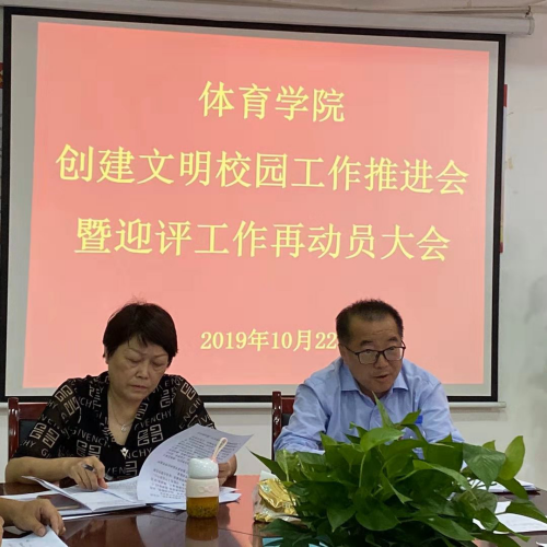 10月22日,beats365唯一官方网站召开创建文明校园工作推进会暨迎评工作再动员大会,全院教职工参加会议。