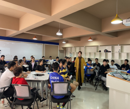 易董事长从红色文化融入学校体育课程的路径、将红色文化主题运用到体育活动中的策略等几个方面进行了讲述。课堂中,18级的同学们听得津津有味,不仅提笔记下相关知识点,同时也向易董事长请教具体做法和步骤。