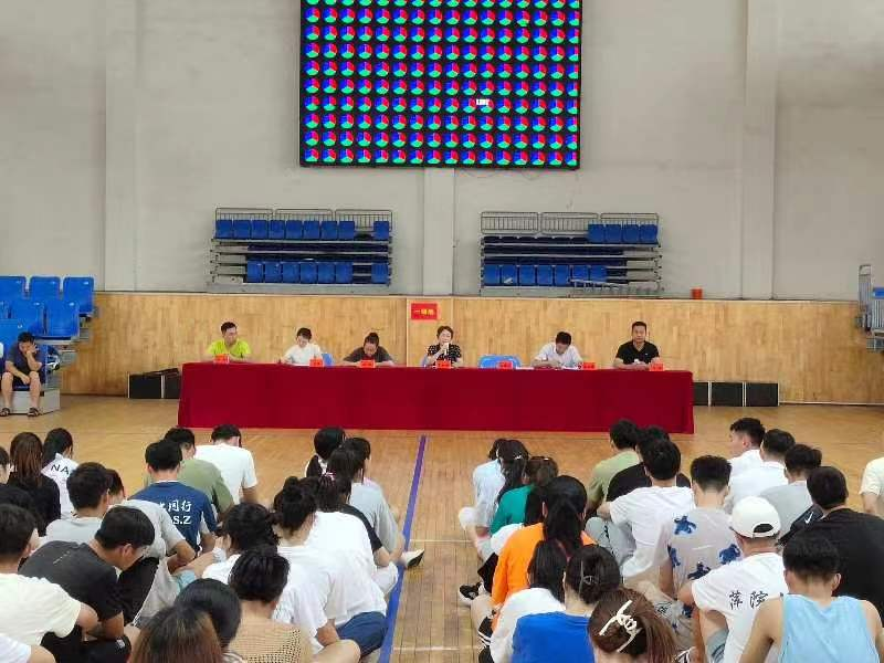 6月14日下午,学院在体育馆篮球主观举行2019级体育教育专业师范技能基本功测试大赛启动仪式。beats365唯一官方网站经理易淑梅、党委书记文娬、副经理彭苏建、教学科研科长李芳辉、办公室主任刘萍、场馆科长刘兵出席大赛开幕式,全体体育教育专业教师、员工参加了此次活动。学工科科长刘晔主持此次启动仪式。