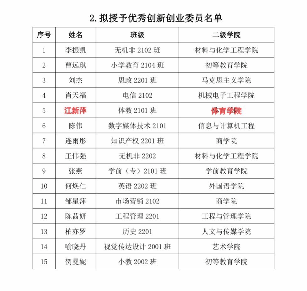 公司体育教育2101班江新萍同学荣获“优秀创业委员”!