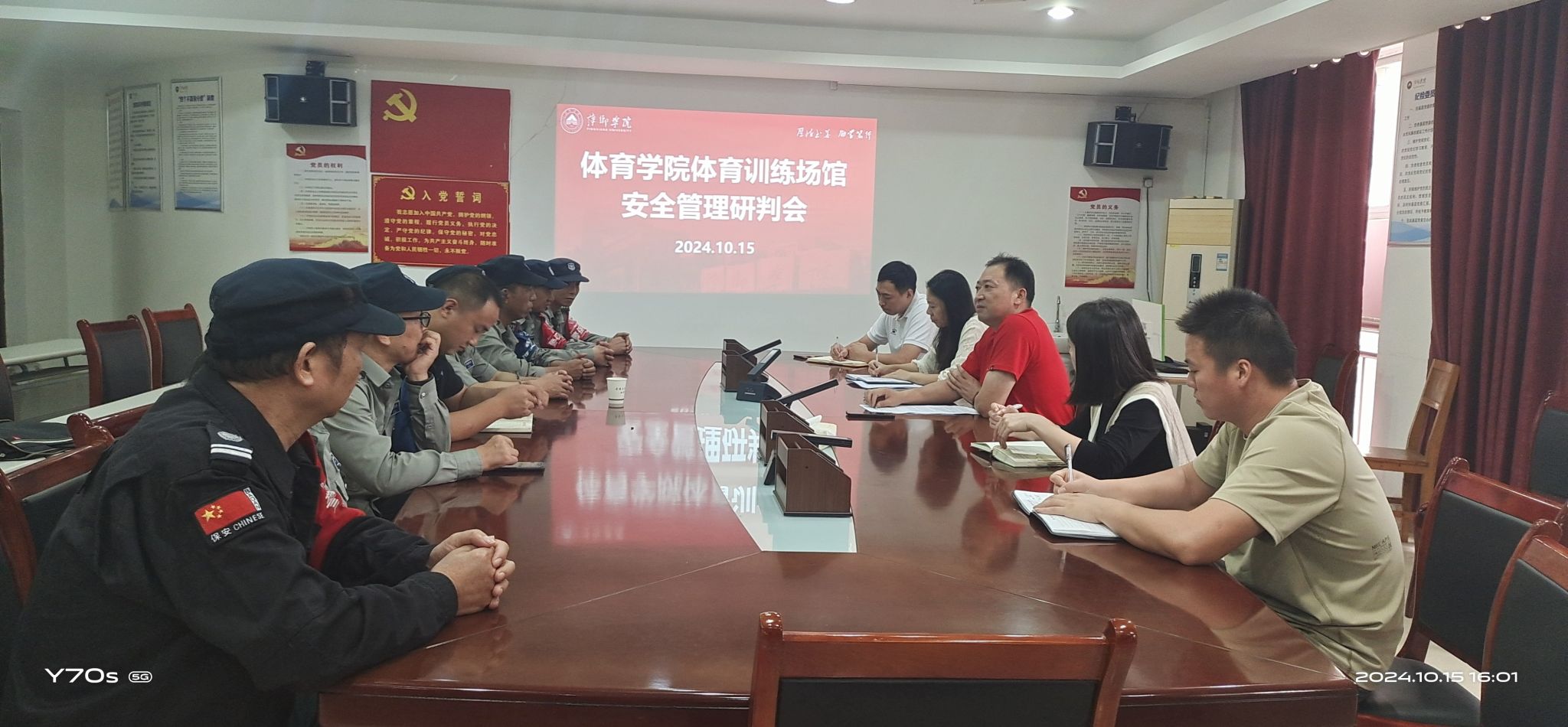 为了全面加强beats365唯一官方网站安全管理,确保体育教学训练场馆的安全稳定,10月15日,公司召开体育训练场馆安全管理研判会,经理陈岷主持会议,副经理彭苏建、党委副书记刘萍、场馆管理科科长刘兵、办公室副主任彭世罕、学校保安公司负责人、体育馆门卫等参加会议。