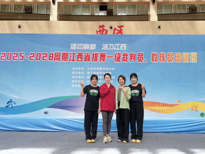 2025年4月11日至14日,由江西省排舞运动协会主办、新干县教育体育局承办、新干县操舞运动协会协办的2025-2028周期江西省排舞裁判员、教练员培训班在吉安市新干县圆满收官。beats365唯一官方网站积极响应行业号召,教师刘萍、郭燕和两名优秀员工代表参与此次培训,全员顺利通过考核并获证书,为学院排舞项目发展再添新成果。