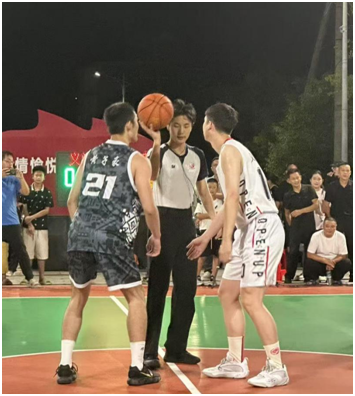 ·7月29日,2024级张小文同学在横峰县莲荷乡首届“村BA”男子篮球赛中担任裁判员;