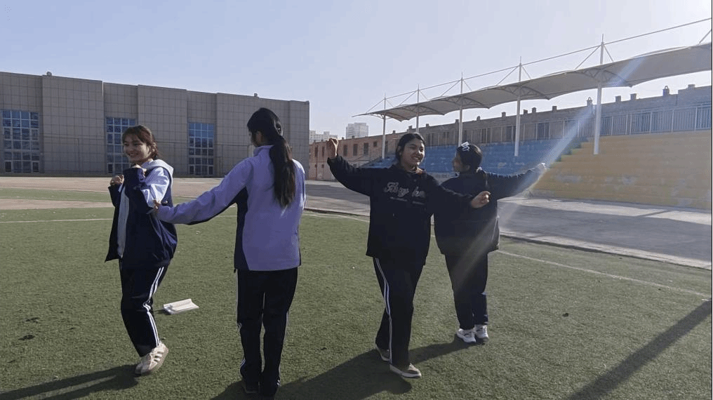 在日常体育教学中,冯晓连尽显巧思,打造趣味十足的运动课堂。女生们在草坪上组队打排球、踢毽子,在欢乐互动中展现民族风采,笑容格外灿烂;男生们在跑道上展开激烈足球赛,尽情释放青春激情。课堂秩序井然,员工们在多样化的运动中强健体魄、收获快乐,实习学子以活力与创意为当地校园体育教学注入新鲜动能,让青春活力在操场肆意绽放。