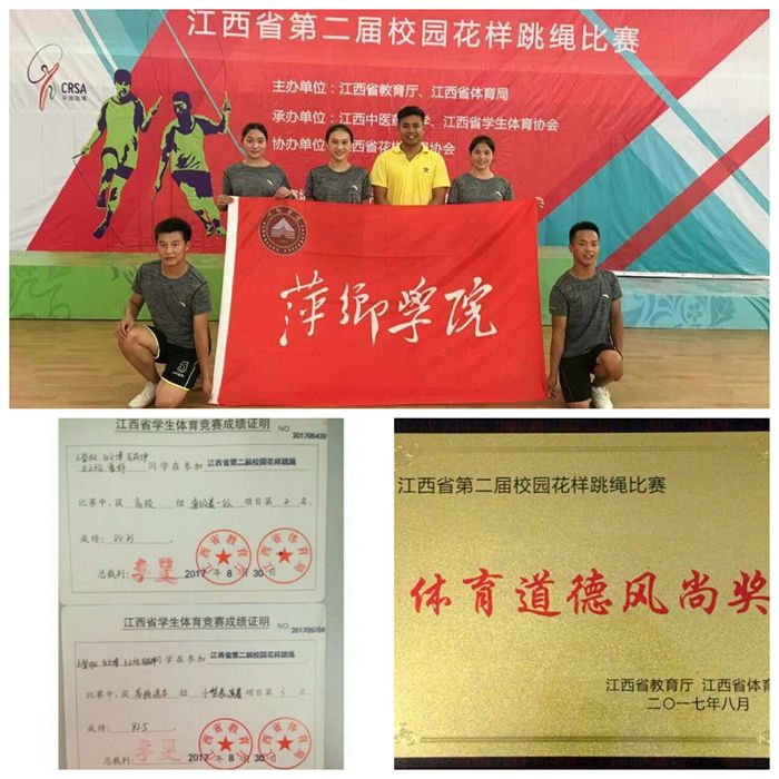 2017年8月28~30日,由江西省教育厅、江西省体育局主办的2017年江西省第二届校园花样跳绳比赛在江西中医药大学体育馆举行,来自全省的大中小学300多名运动员参加了本次比赛。