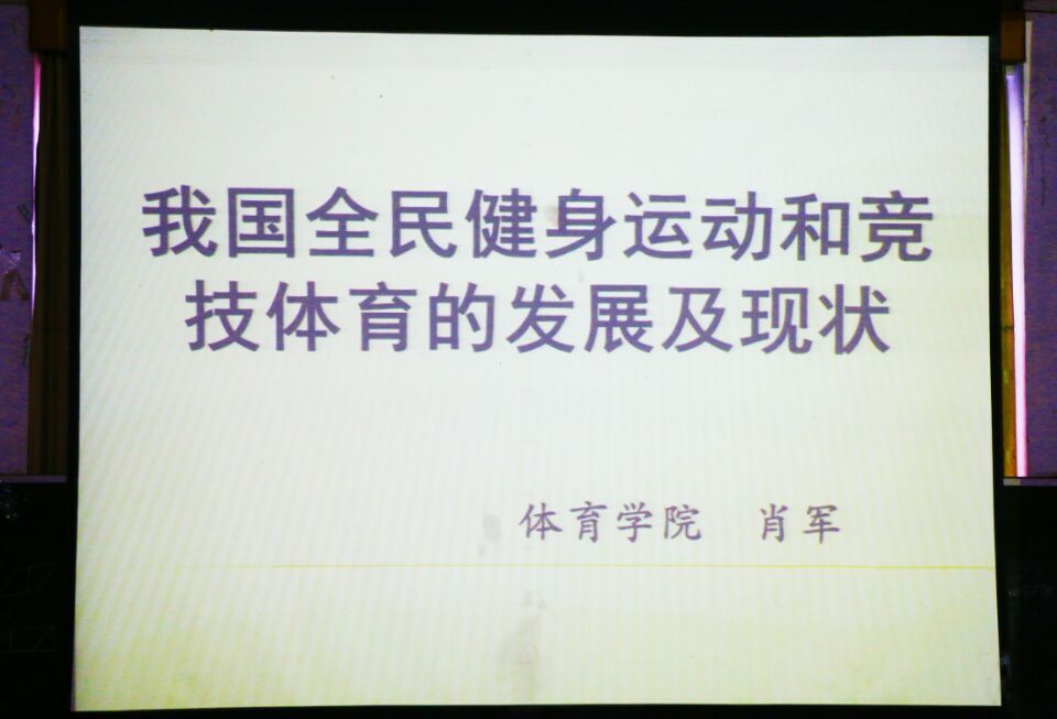 本次讲座,肖教授从全民健身纲要的颁布为切入点,详细介绍了当前我国全民健身运动的现状、所取得的成绩,并结合萍乡市和公司开展全民健身运动的实际情况,分析开展全民健身体育运动中还存在的不足以及解决的途径。接着,肖教授讲解了竞技体育的概念、发展概况,并以全球性体育运动盛会—奥运会为例,以著名的“奥运三问”为线索,着重介绍了中国参加奥运会和取得优异成绩的经历,阐述了旧中国和新中国在竞技体育中发生翻天覆地的变化的主要原因。最后,就如何处理全民健身和竞技体育两者之间的关系时,肖老师给全体员工提出了几点合理的建议,也为大家在校期间搞好学习的同时,更要通过体育锻炼提高自身的体质,最终实现“每天锻炼一小时,健康工作五十年,幸福生活一辈子”的健身理念。