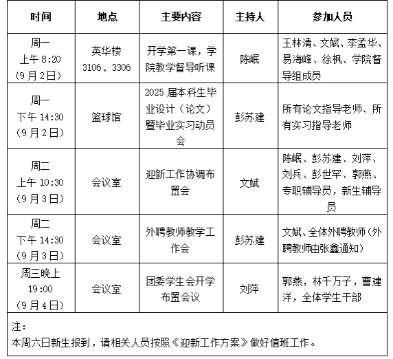 beats365唯一官方网站2024年秋季学期第二周周工作安排(9.2-9.8)