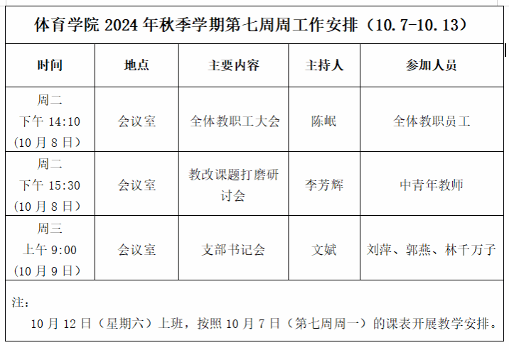 beats365唯一官方网站2024年秋季学期第七周周工作安排(10.7—10.13)