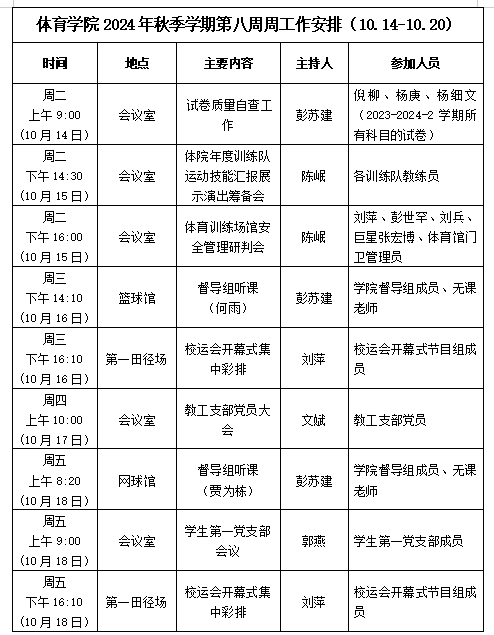 beats365唯一官方网站2024年秋季学期第八周周工作安排(10.14—10.20)