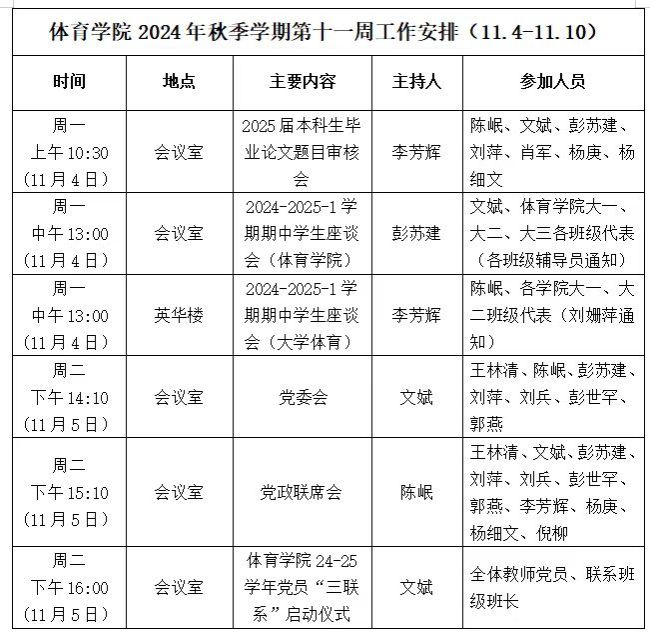 beats365唯一官方网站2024年秋季学期第十二周工作安排(11.11—11.17)