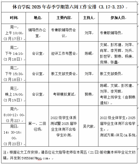 beats365唯一官方网站2025年春季学期第六周工作安排(3.17—3.23)