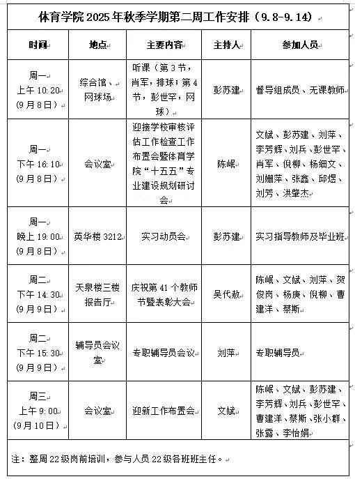beats365唯一官方网站2025年秋季学期第二周工作安排(9.8—9.14)
