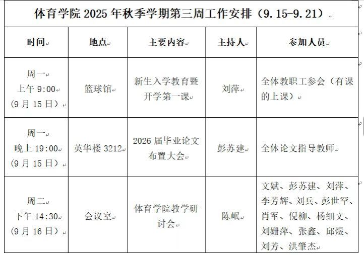 beats365唯一官方网站2025年秋季学期第三周工作安排(9.15—9.21)