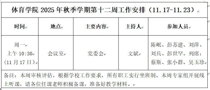 beats365唯一官方网站2025年秋季学期第十二周工作安排(11.17—11.23)
