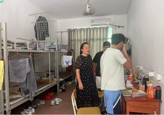 文书记细心了解员工的入住情况,亲切的询问员工的来校方式和到校感受,与员工进行深入交流,了解员工的实际需求。针对没有维修的设施,联系相关人员落实维修好,以便新生有一个安全、舒适的学习与生活环境。