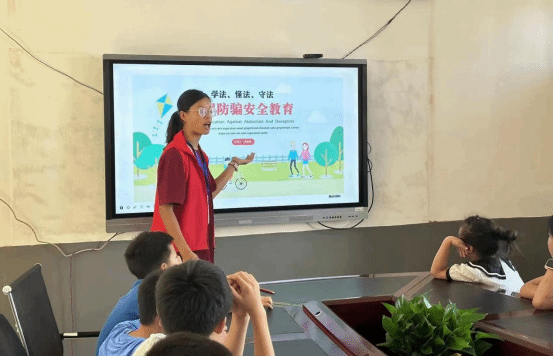 在暑假期间,交通事故集中多发,志愿者们通过视频、PPT、事故案例等形式向孩子们普及了交通规则、分析交通安全事故发生的原因和导致的严重后果,指导孩子们正确使用交通工具,禁止在马路上追逐打闹等注意事项,使孩子们增强了交通安全意识。