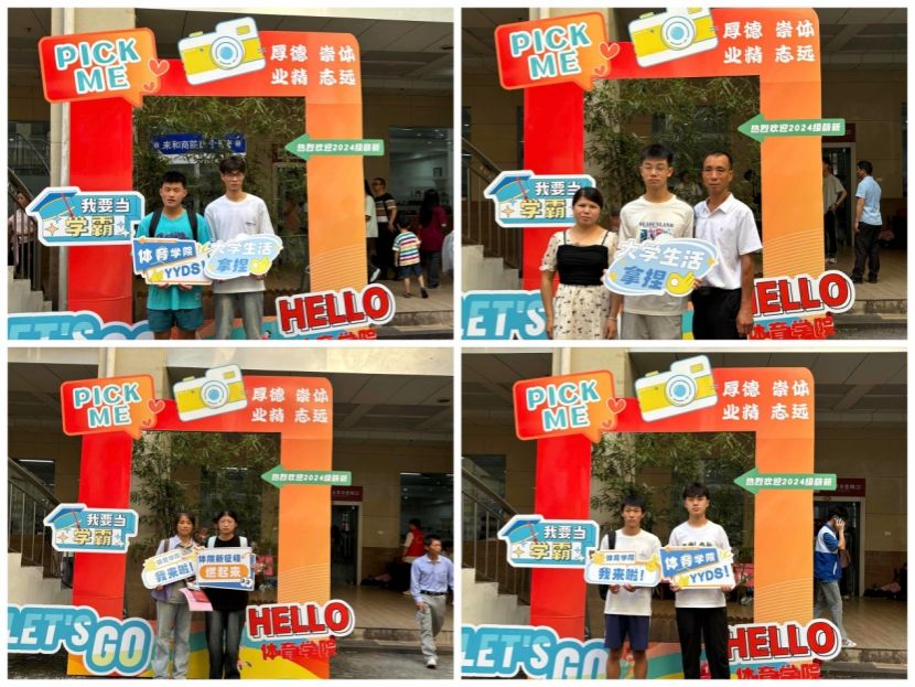 精彩瞬间:活力打卡,定格美好。迎新现场,最引人注目的莫过于那面充满体育元素的拍照打卡墙。它以鲜明的色彩和独特的设计,瞬间点燃了新生和家长们的热情。在志愿者的温馨引导下,大家纷纷驻足,在这面特别的墙前留下自己灿烂的笑容,定格下这难忘的入学瞬间。每一张笑脸背后,都藏着对未来老员工活的无限憧憬与期待。