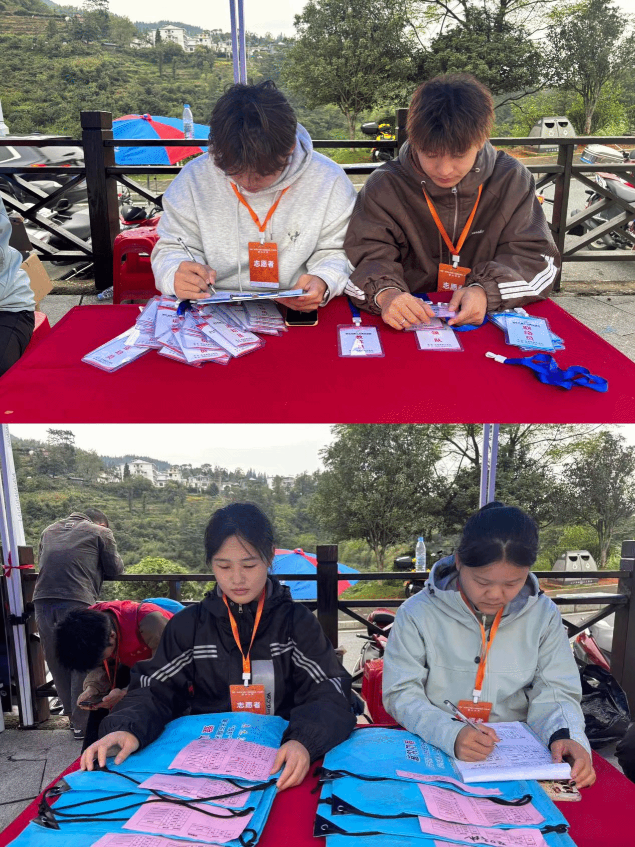 到达比赛现场,志愿者们便开始着手准备工作:从物资清点、医疗站布置,到赛道指引牌架设,每一项工作都在寒风中紧锣密鼓推进。比赛时,他们分散在医疗保障、补给分发、赛道指引、终点服务等关键岗位,以高效协作衔接每一处细节: