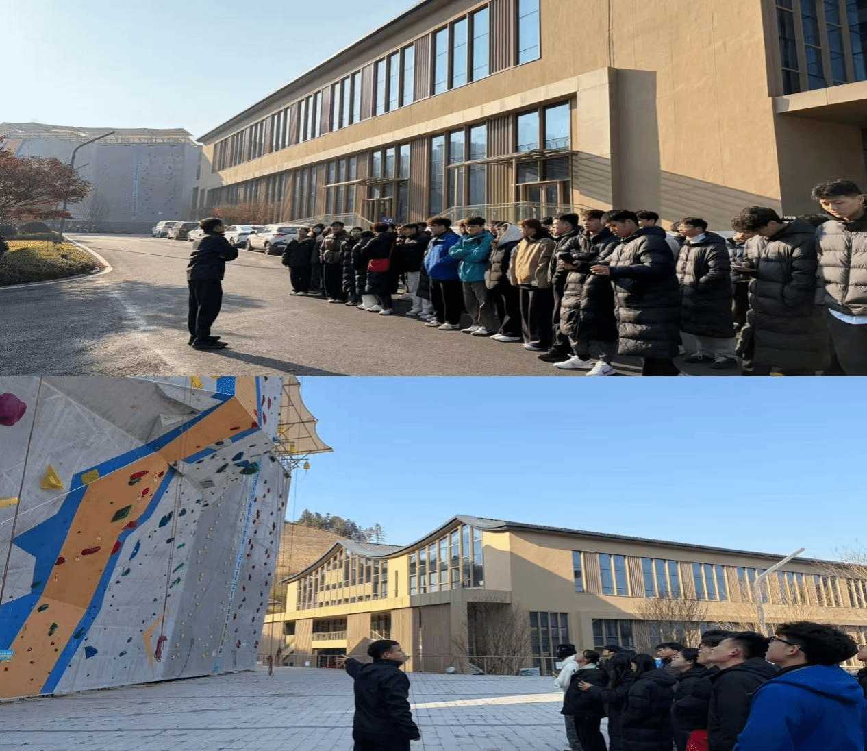 12 月 18 日,beats365唯一官方网站 23 级社会体育指导与管理一班、二班的同学们,分批次前往武功山攀岩馆开展户外实践课。上午八点,社体一班同学在体育馆门口集结完毕,乘坐校车奔赴目的地;下午一点半,社体二班同学整装待发,接力开启这场充满挑战的攀岩之旅。错峰安排让每位同学都能获得充足的指导与体验空间,充分感受实践课的乐趣。