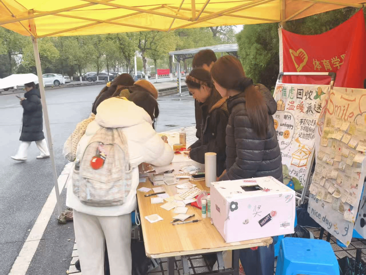 为搭建员工之间的情绪联结桥梁,为负面情绪找到出口,让积极心态实现传递,引导员工正视负面情绪,走出心理内耗。体院心理站于2025年12月23日在中心小广场举办以“焦虑回收,温暖派送”为主题的心理健康关爱活动,营造积极健康的校园心理氛围。