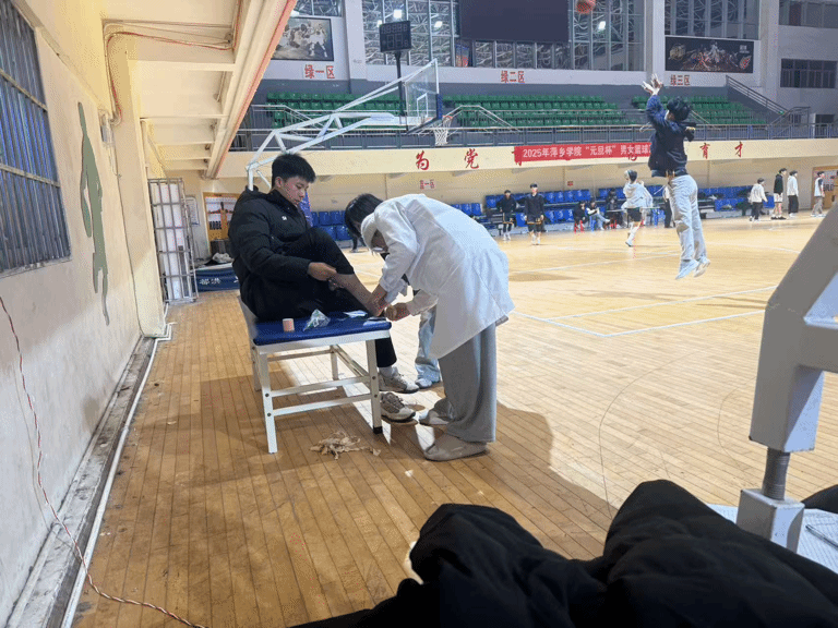 从开赛至今,康复协会始终坚守岗位,用专业、高效的服务守护着每一位运动员的赛场征程。接下来,他们将继续以饱满的热情和严谨的态度,全程护航赛事直至落幕。此次赛事保障不仅是一次服务实践,也是一次宝贵的学习过程,同学们将课堂所学转化为实战能力,真正体现了“在服务中学习,在学习中成长”的团队宗旨。正是这份幕后的坚守与付出,让运动员们能毫无后顾之忧地奋力拼搏,也让这场篮球盛宴更具温度与安全感。