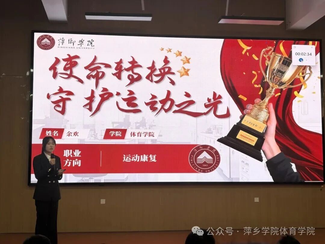 决赛现场,张惠明围绕体育行业发展趋势,结合自身专业特长,阐述个人职业发展定位。他从职业认知、发展路径、实施计划等方面展开论述,清晰介绍职业规划的核心内容。在答辩环节,张惠明针对评委提出的问题逐一作答,展现出对自身职业发展的深刻思考与清晰规划,最终以 90.88 分的成绩荣获大赛第三名。